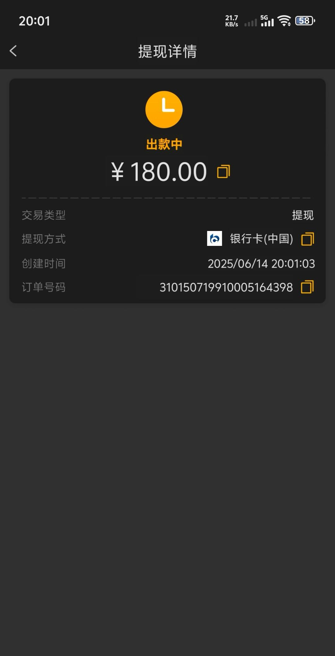 我送了8.1,自己碰瓷,不限制游戏,五倍流水,最高下180我申请提了180,不知道黑不黑,自测