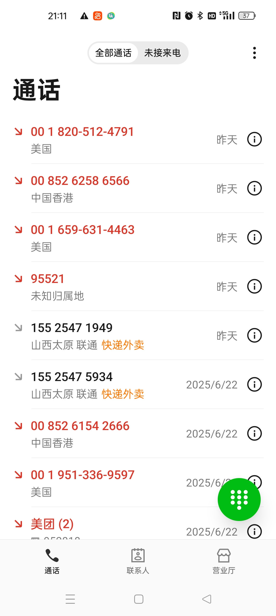 这些电话都是哪里的呀,白天睡着了就没有接