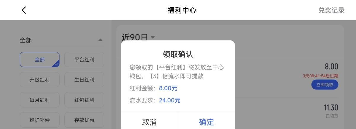登录就有在福利中心自己领取