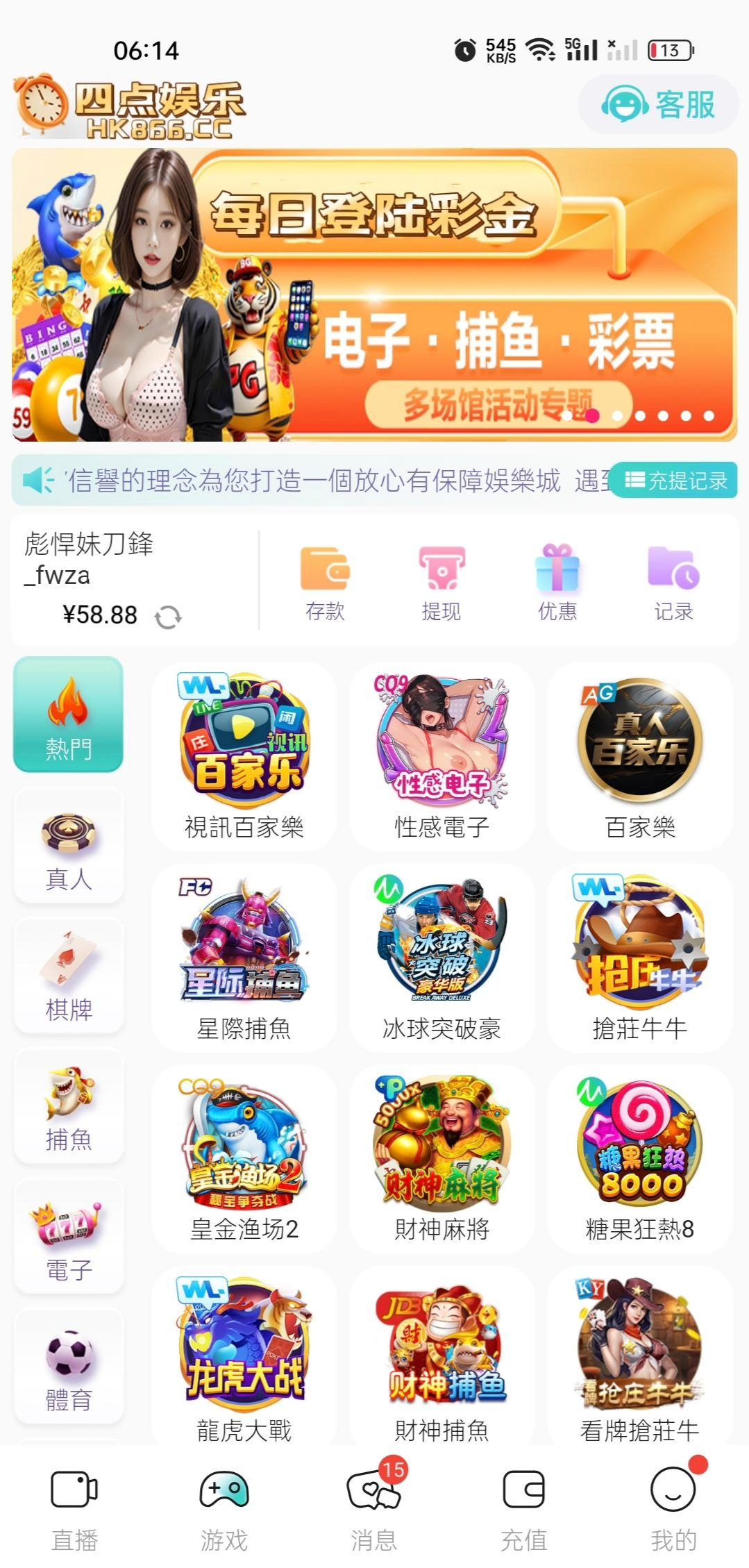 四点娱乐电话特邀送登陆58.88彩金,老会员登陆一下看看,没账号的去蒙手机号试试。电话特邀截图