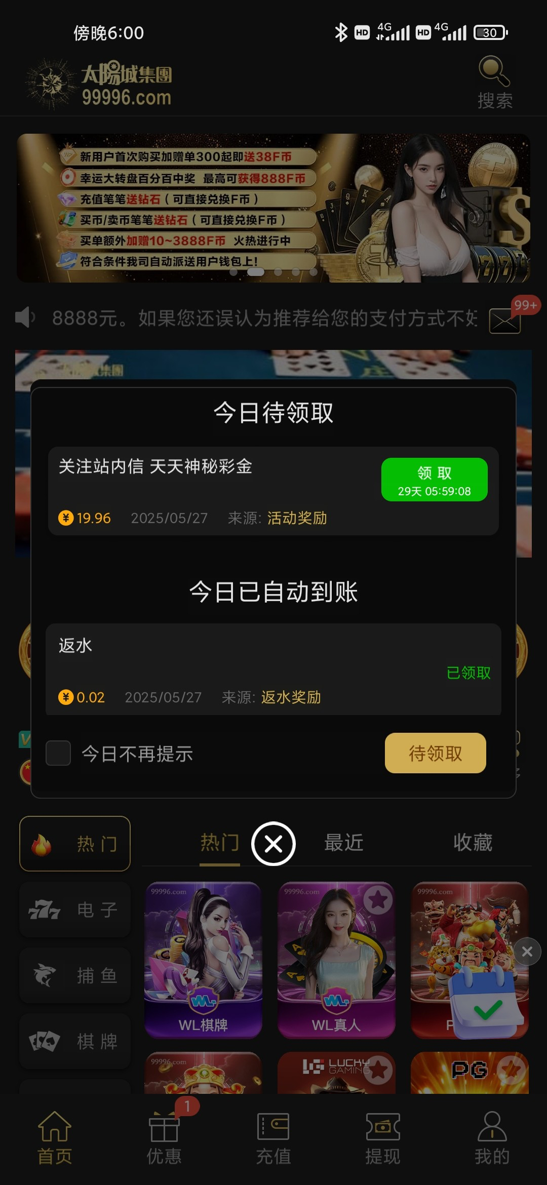 【太阳城99996】神秘彩金
